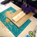 Kさんはクラフトナイフを使って、立体的に削り出す作業に夢中。「背中のラインが一番お気に入りなんだよね」と、愛着たっぷりに語ってくれました。