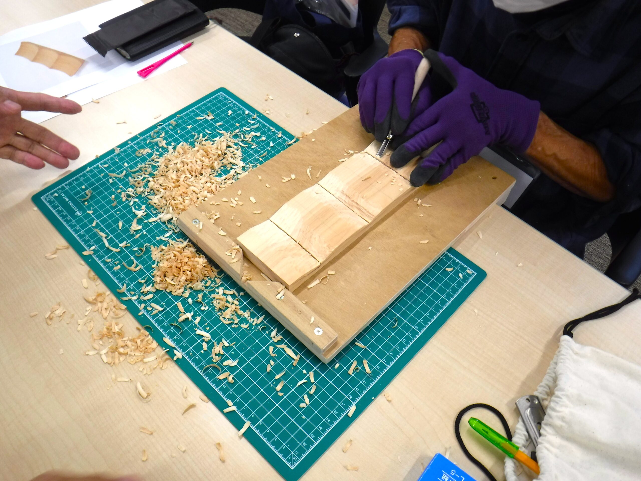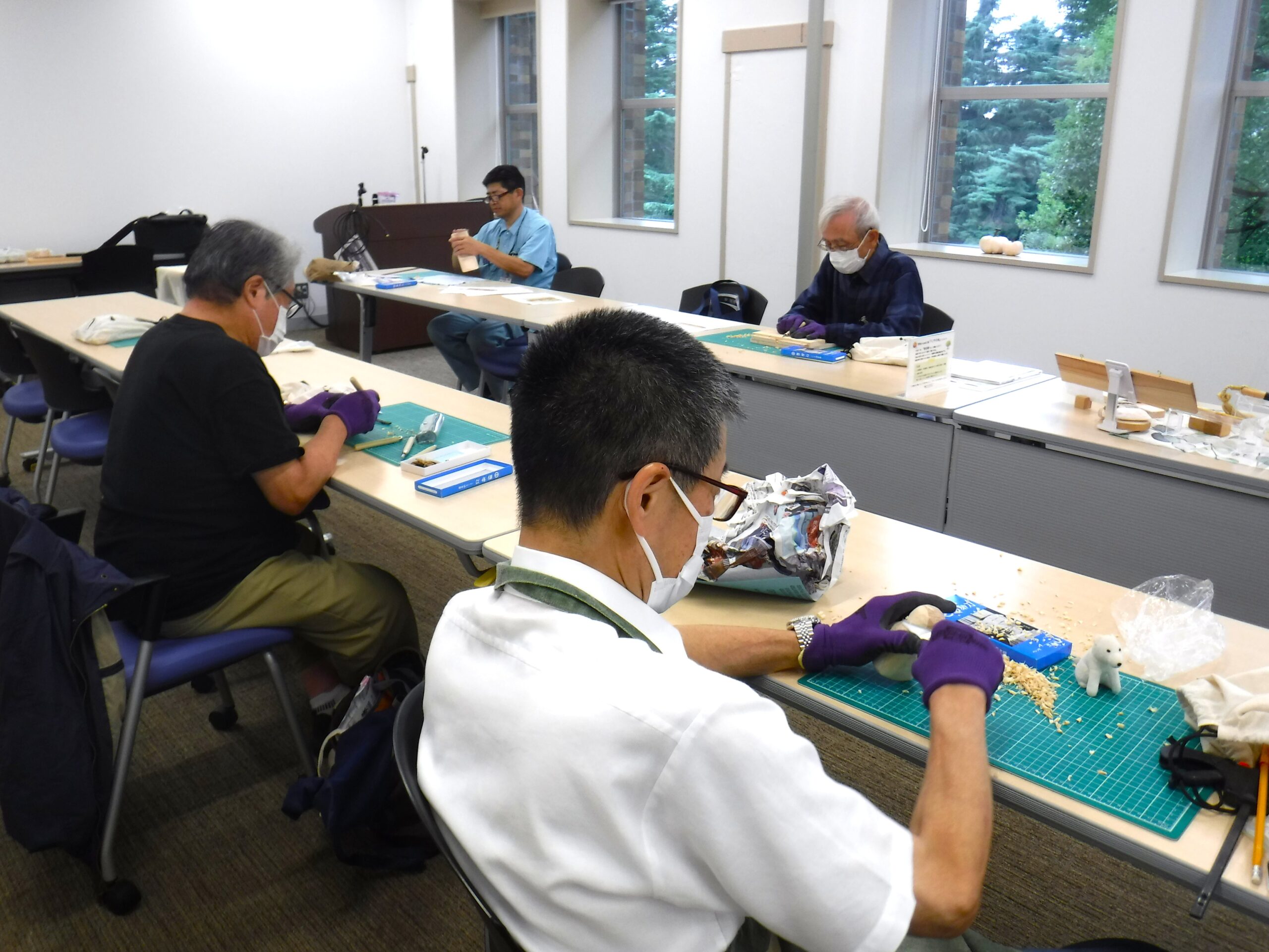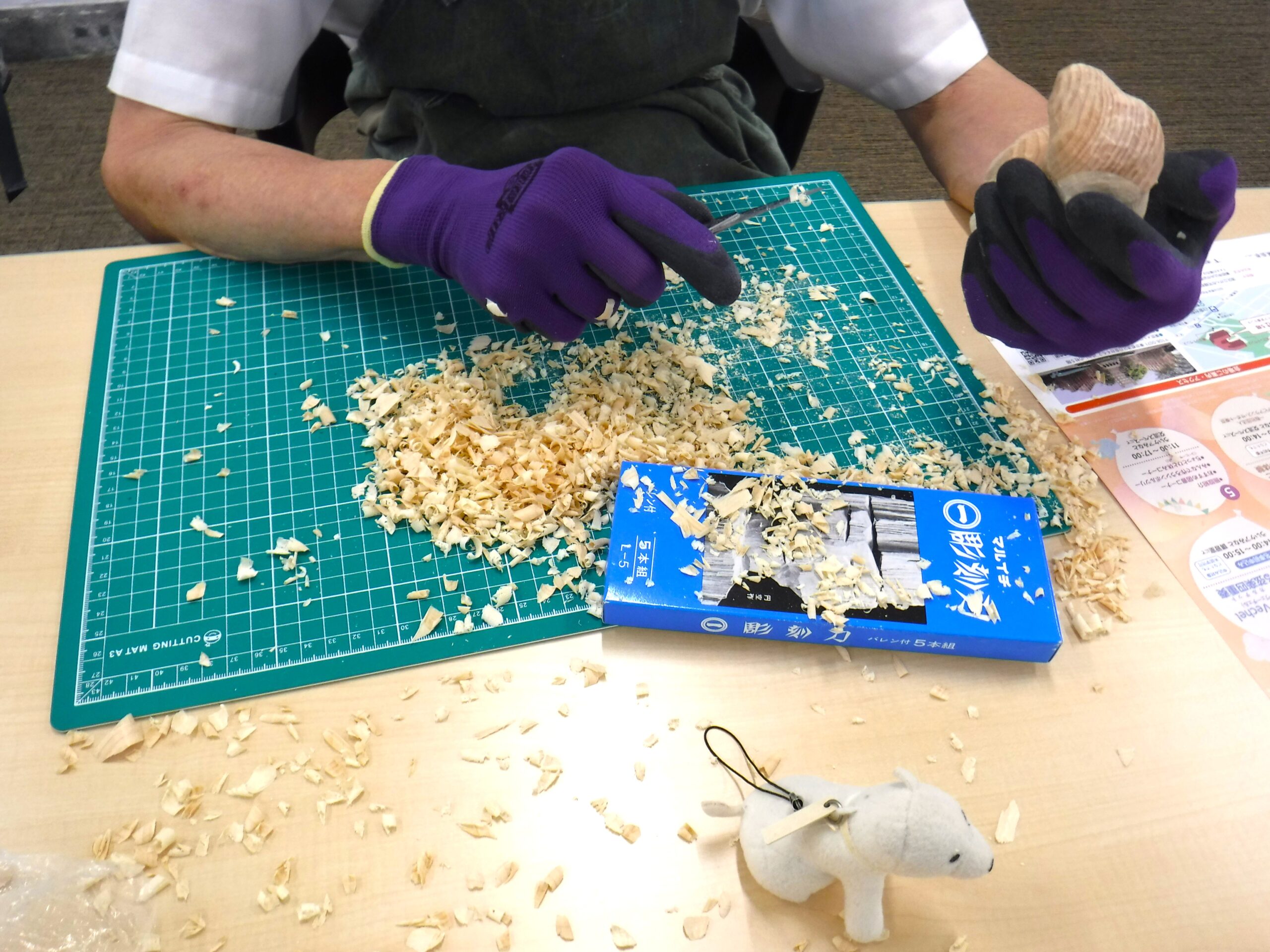 Kさんはクラフトナイフを使って、立体的に削り出す作業に夢中。「背中のラインが一番お気に入りなんだよね」と、愛着たっぷりに語ってくれました。