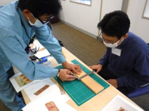 第20回 男性がん患者工房「くすの木」を開催しました(11/19) 2025年11月21日 最終更新日時 : 2025年11月21日 uikeaminato 本日もやわらかな空気に包まれながら、工房「くすの木」がスタートしました。美術展に初めて出展したMさんとKさんは、刺激を受けて作戦会議中!作品のアイデアを出し合い、楽しそうです。Tさんも、新たなものづくりを開始。講師と製図に挑戦しています。一方Oさんは、時折聞こえる談笑を心地よいBGMにしながら、ものづくりに没頭。木目にそっと彫刻刀を沿わせ、丁寧に、丁寧に、彫り進めています。「ものづくり」の楽しみ方は十人十色。私たちと一緒に、始めてみませんか? くすの木スタッフ:まりも Follow me! FacebookXBlueskyHatenaPocketCopy