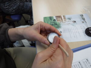 講義の最後には、完成したハンドクリームで手のマッサージ。