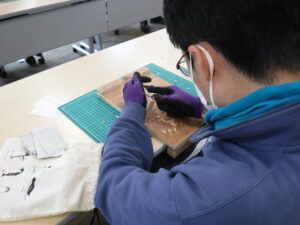 木とじっくり向き合い、まるで対話をするかのようにゆっくり削り進めるTさん。