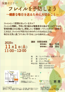 11/1(土)栄養セミナー「フレイルを予防しよう~健康な毎日を送るために大切なこと~」