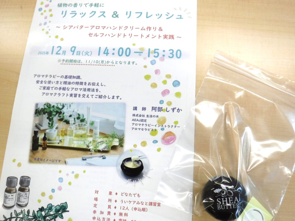 - 植物の香りで手軽にリラックス&リフレッシュ~シアバターアロマハンドクリーム作り&セルフハンドトリートメント実践~を開催しました。(12/9)